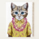 Ce dessin présente un portrait de chat en chemise d'été et lei hawaïen.