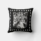 Un drôle de visage de chat aux yeux larges sur un coussin noir et blanc, avec une bordure de chats blancs. Disponible sur un éventail de styles et de tailles coussins. De Coussin Pretty, une boutique de design Scarribaby. Soutenu par la garantie Zazzle.