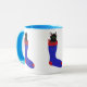 Chat noir mignon et adorable, chaton dans un rouge et bleu Noël Stocking, est imprimé sur des tasses personnalisées. Merci pour faire du shopping à CherylsArt sur Zazzle.