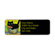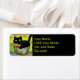 Mignonne étiquette d'adresse de retour faite en noir et avec des graphiques de style dessin animé d'un chat noir posé dans un pot de fleurs, avec texte jaune personnalisé. Personnalisez le texte en fonction de vos besoins.