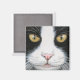 Cet aimant frigo avec un gros plan du visage d'un chat noir et blanc est une idée cadeau bon marché que tous les amateurs de chat aimeront! Créé à partir d'un tableau original 2008 Lisa Marie Robinson