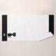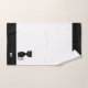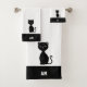 Chat noir et monogramme sur ensemble de serviettes de bain noir et blanc. Image de chat seulement sur un coin. Elégant design simple pour les célibataires et les couples !