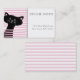 NewParkLane - Cartes de visite personnalisés, avec un mignon chat noir, regardant à travers les stores roses, avec un motif moderne et abstrait de rayures roses et blanches sur le dos.