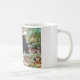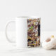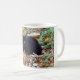 Chat noir aux yeux verts et jaunes dans les feuilles d'automne - photographie sur une tasse.