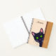 Journal dans une illustration d'un petit chat noir aux yeux verts, regardant autour d'une porte, personnalisé avec un nom modifiable.
