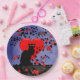 A silhouette of Théophile Steinlen's black cat for the Le Chat Noir club in a modern setting for Valentine's Day featuring the black cat with a lots of roses and a red heart moon. Also great for bridal showers!