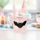 Ce magnifique verre peut présenter une chauve-souris vampire déplaisante avec le visage d'un chat. La chauve-souris vole avec des ailes tendues et a les yeux verts maléfiques d'un chat déplaisant et quelques crocs blancs effrayants. Cette chimère déplaisante est la créature parfaite pour une Halloween hantante. Il y a du texte personnalisé pour que vous puissiez inclure un nom ou un message de votre choix.