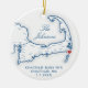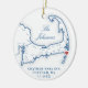 Celebrate your first Christmas as a married couple with this keepsake ceramic ornament featuring a stunning Cape Cod map theme, perfect for commemorating your wedding at the Chatham Bars Inn in Chatham, MA. Personalize it with your wedding details on the front and a cherished photo on the back. This elegant ornament is a timeless reminder of your special day and a beautiful addition to your holiday décor. Artwork by Coastal Map Designs.