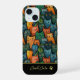 Profitez de cette oeuvre d'art avec des chats cool design avec des chats de dessins animés dans de belles couleurs avec des tons de bleu, orange, jaune et vert. Ce motif est transparent. La partie inférieure est noire avec un court texte personnalisé "chats cool" que vous pouvez mettre à jour ou mettre votre nom dessus. Il a aussi un empreinte de patte de chat. Ce serait un grand cadeau pour une mère de chat ou pour toute autre personne qui aime les chats.