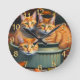 Les images sont trois chats gingembre dans un porte-plante de pot.