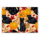 Motif peint à la main avec chats noirs, citrouilles et feuilles d'automne. Mix-media- peinture numérique et aquarelle.