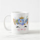 tasse en céramique Amoureux des chats, avec de jolis graphismes d'un visage de chat de dessin animé avec de gros cils aux yeux, et une couronne dorée avec des fleurs bleues. Texte, sur le devant de la tasse lit la règle des chats, et peut être personnalisé pour lire ce que vous voulez.