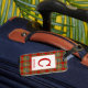 Luggage tag with the Clan Chattan tartan, a colourful traditional Scottish plaid pattern in bright red, green, yellow, and light blue, with black and white accents. Personalize with your initial and name on a light coloured plate for easy legibility.
