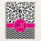 Créez votre propre nom personnalisé et votre planificateur monogramme. L'image principale est un motif numérique empreinte de léopard noir et blanc. Vous pouvez customiser les couleurs de la bande rose chaud et mandala rond pour votre monogramme. Design élégant monogramme de calligraphie cursive en noir et blanc. Au bas du plan se trouve un motif en chevron noir et blanc. Un beau cadeau de retour à l'école pour un enseignant ou un étudiant.