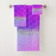 Sur cet ensemble de serviettes design se trouve une motif rêvée bleu violet rose mermaid avec un éclat d'argent pour glacer n'importe quel décor de salle de bain. Vibes de glamour lunatique.