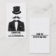 Chauffeur Business Card with top hat, tuxedo, moustache, and bow tie graphic. Card has a grunge feel to it. Fully customizable, enter additional information on back of card. Perfect for a chauffeur, limo driver, taxi driver, or courier.