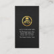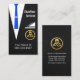 Card features a creative chauffeur's black jacket-suit coat. The business name "Chauffeur Services" which you can change is over at the top of the card. Just underneath the breast pocket lies a gold chauffeur's logo you can use. Contact details are near the base of the card.