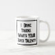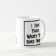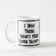 Drôle slogan sur une tasse qui dit "Je conduis des camions. Quel est VOTRE super talent ?" Mug pour un conducteur de camion. Texte en gras noir et blanc.