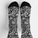 Socks in an Art Nouveau pattern based on a vintage William Morris floral damask wallpaper pattern, digitally enhanced and colored in white on a black background