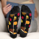 Ces chaussettes colorées présentent un motif de récolte d'automne vibrant avec citrouilles, baies, glands et châtaignes sur un arrière - plan noir (personnalisable - cliquez sur Modifier la conception). Idéal pour la saison d'automne !