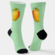 Big mango on your socks. Along with your name, text, or slogan in dark green serif font below it. Sweet juicy fruit on light green background.