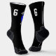 Faites vos propres chaussettes d'équipe sportive haute performance sur mesure pour les joueurs de volley-ball et les équipes aux couleurs bleu de l'équipe! Cliquez simplement pour personnaliser le modèle et tapez votre propre nom d'équipe de volley-ball et le numéro de maillot de joueur de volley-ball dans les zones de texte personnalisées. Vous pouvez également utiliser les outils de personnalisation pour changer la couleur de la chaussette (actuellement définie sur le noir). Fait un grand cadeau d'équipe pour les équipes de volley-ball avec des couleurs bleu d'équipe, en particulier les équipes de volleyball au lycée et au collège!