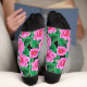 Chaussette Camellias rose Fuchsia et Feuilles verts Jade