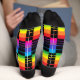 Gardez vos tootsies grillées dans ces chaussettes super cool ! Ces chaussettes avec l'oeuvre de Buttercup's Clothing et Collectables disposent d'un motif branché avec toutes les couleurs de l'arc-en-ciel, avec talon et orteils contrastés. Les couleurs sont le noir, le rouge, l'orange, le jaune, le vert, le bleu, le violet et le rose. Taille hommes et femmes disponibles.