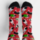 Chiens de Collie à la frontière mignonne dans des tenues de vacances festives portant chapeaux de Père Noël, bois, cordes de lumières et pois de polka et chandails de Jacquard sur un arrière - plan rouge avec des ornements épars.