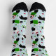 Chiens de Collie à la frontière mignonne dans des tenues de vacances festives portant chapeaux de Père Noël, bois, cordes de lumières et pois de polka et chandails de Jacquard sur un arrière - plan rouge avec des ornements épars.