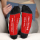 Chaussettes de Pic Rouge mignonne avec un motif de caricatures ornées de bouleaux, fond solide avec le texte, I'mixed martial art Bird Nerd et I love Birdies, les deux lignes peuvent être changées à votre propre texte - une bande blanche sur le dessus avec des couleurs coordonnées et le logo BirdyBirdy™ sur le dessus. Sans aucun doute, le cadeau parfait pour les amateurs d'oiseaux pour l'observateur d'oiseaux qui a tout.. bien - Presque tout..