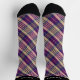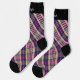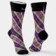 Design écossais violet, jaune doré et bleu. Motif sans couture. Couleur de bande supérieure personnalisée. Texte personnalisé sur chaque chaussette.