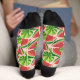 Icônes de tranche de pastèque rouge mûre. Motif sans couture. Couleur arrière - plan personnalisée. Couleur de bande supérieure personnalisée. Texte personnalisé sur chaque chaussette.