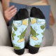 Feuilles de raisins farcis avec du riz et des herbes. Tranches de citron, aneth, feuilles de menthe et tzatziki tremper. Motif sans couture. Couleur arrière - plan personnalisée. Couleur de bande supérieure personnalisée. Texte personnalisé sur chaque chaussette.