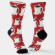 Chaussettes de Noël avec un motif qui présente une tasse souriante de cacao chaud avec un sucre de canne et plusieurs guimauves joyeuses sur un arrière - plan rouge. Ajoutez une paire ou deux à votre panier, ramenez-les chez vous, puis profitez-en sur vos pieds ! Sucre de canne Pain d'épices Père Noël Chaussettes de Noël Sweetsham Nourriture Art | ©Melissa Patton - Concepteur/Illustrateur