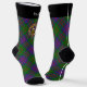 Clan MacDonald badge crête entouré d'une sangle et boucle sur l'arrière - plan tartan. Couleur de bande supérieure personnalisée. Texte personnalisé sur chaque chaussette.