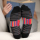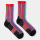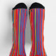 Fun géométrique lignes verticales rayées de lignes colorées motif en longueurs variables. Rouge, bleu, jaune, rose, vert, violet contre arrière - plan rouge. Oeuvre originale de TamiraZDesigns.