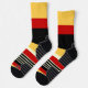 Des rayures répétées aux couleurs vives comme le jaune moutarde avec arrière - plan rouge foncé et noir.