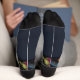 Chaussette Crâne gothique, serpent bleu et fleurs sur bleu