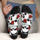 Crânes noirs et blancs Rockabilly et chaussettes à motifs de roses rouges