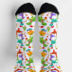 Un amusant motif de dinosaure de dessin animé pour chaussettes avec de nombreux dinosaures colorés de dessin animé tels que T rex - Tyrannosaurus Rex, Pterodactyl et Tricératops portant des chapeaux santa et portant des cadeaux. Un cadeau amusant non ennuyeux chaussette à acheter pour ceux qui aiment les dinosaures. Joyeuses fêtes.