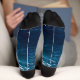 Photo aérienne d'une mer magnifique bleu foncé et blanc ombragé avec des vagues mousseuses.