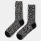 Ces chaussettes d'équipage sont un élégant motif de damas noir et blanc avec des rouleaux blancs fantaisistes sur un arrière - plan noir.