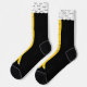 Amusez-vous avec ces chaussettes ridicules de jambe de poulet. La base de la conception est noire avec l'interprétation de dessin animé de fines pattes de poulet orange jaune se démarquant par la couleur foncée. Le dessus des chaussettes est blanc représentant le début des plumes du poulet. Utilisez-les pour égayer votre journée et apporter le rire et la sottise aux gens autour de vous.