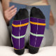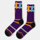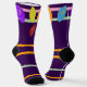Feuilles de chute lunaire en violet, jaune, orange et rouge contre arrière - plan violet foncé. Bandes géométriques roses, vertes et oranges. Oeuvre originale Design par TamiraZDesigns.