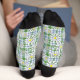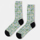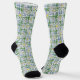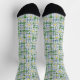 Chaussette Fleurs chamomiles blanches sur à damiers bleu vert
