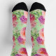 Pink Dahlia Flowers a deux belles fleurs Dahlia peintes en rose et violet et un petit bourgeon mignon. Les feuilles verts et les tiges avec de petites fleurs blanches agissent comme un accent dans l'image à motifs. Le seul regroupement de fleurs est grand et s'étend au-delà des bords.