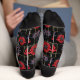 Fleurs rouges sur un arrière - plan noir avec des figures dorées.