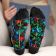 De belles chaussettes en vitrail festif, des chaussettes de Noël pour lui et pour elle. Effet de verre de fenêtre coloré mal assortis chaussettes d'équipage.