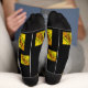 Trois styles de fractales dessinées à la main, y compris les triangles Sierpinski, les joints apolloniens et un design carré à thème similaire, composent les couches de ce mandala géométrique, superposées sur un dégradé jaune et orange vif.